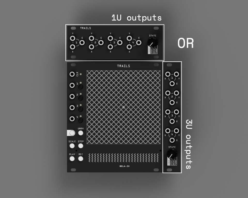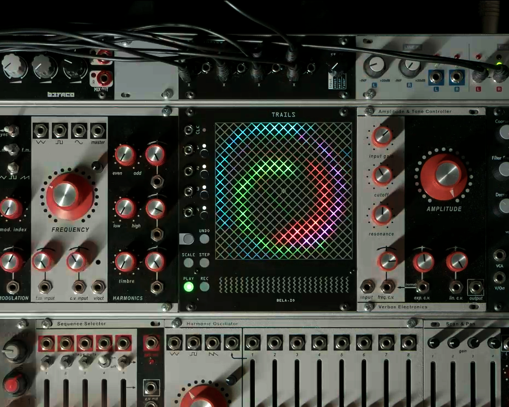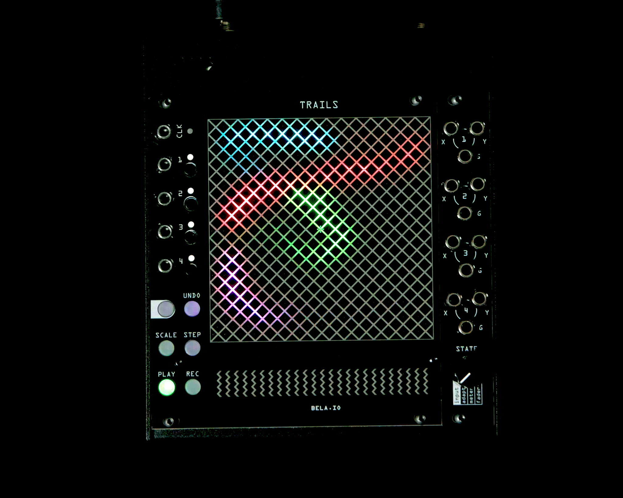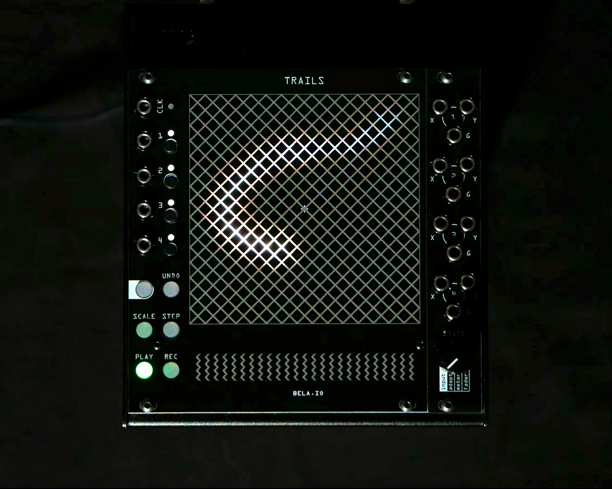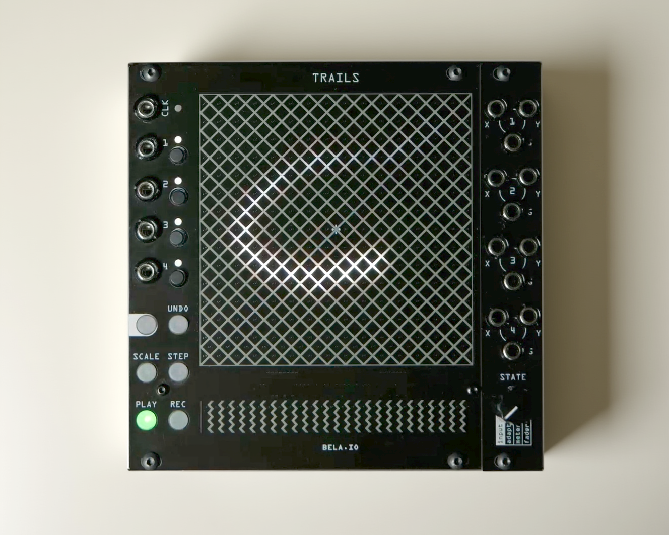 Trails is a four-channel touch recorder for Eurorack that captures finger movement as musical structure. Melodic, harmonic, rhythmic, and control elements can be composed simultaneously through gesture and shape, then transformed in space and time to create evolving contrapuntal and polyrhythmic relationships.